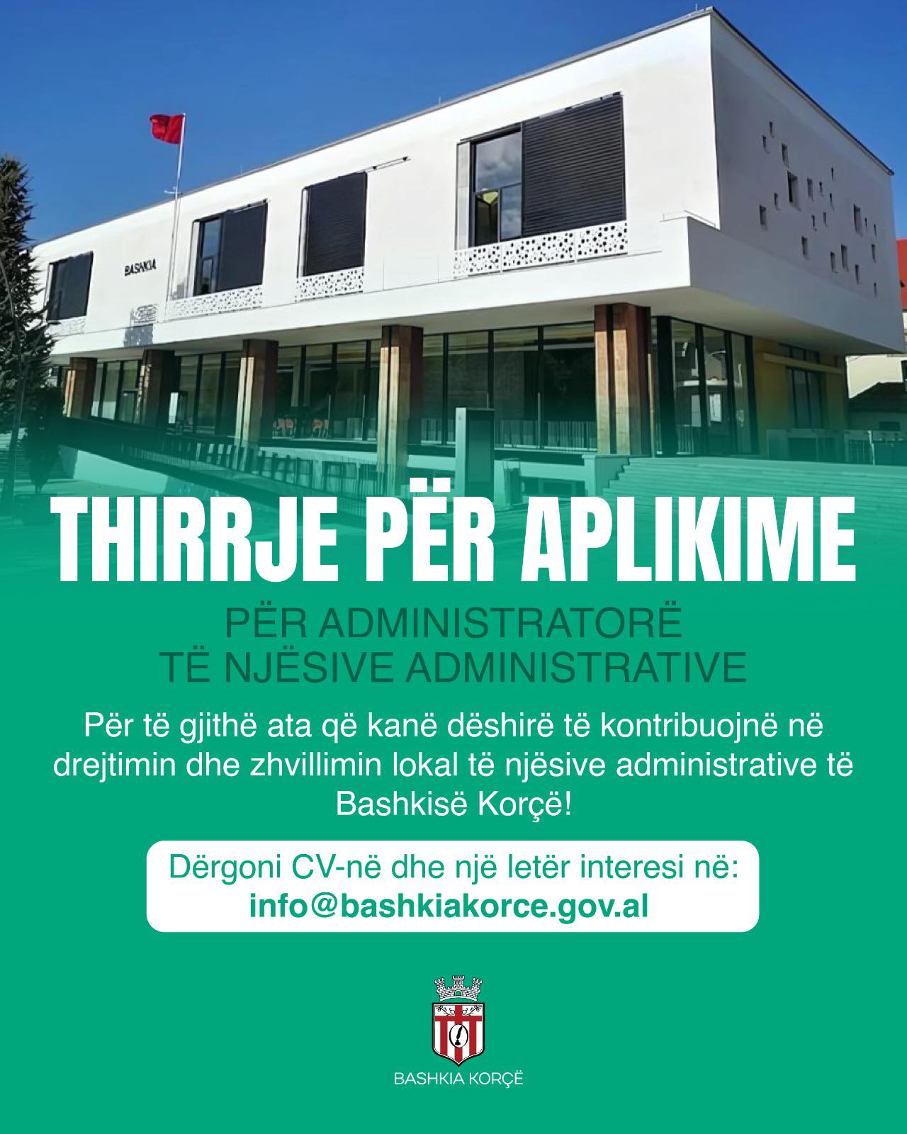 THIRRJE PËR APLIKIME – Për Administratorë të Njësive Administrative Bashkia Korçë fton të gjithë individët